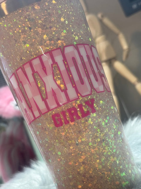 Sip, Breathe, Repeat. For the girlies who overthink everything but still look cute doing it — the Anxious Girlie 20 oz tumbler is your new emotional support drinkware. With a fun, relatable design and high-performance insulation, this tumbler brings a little calm (and a lot of personality) to your day.