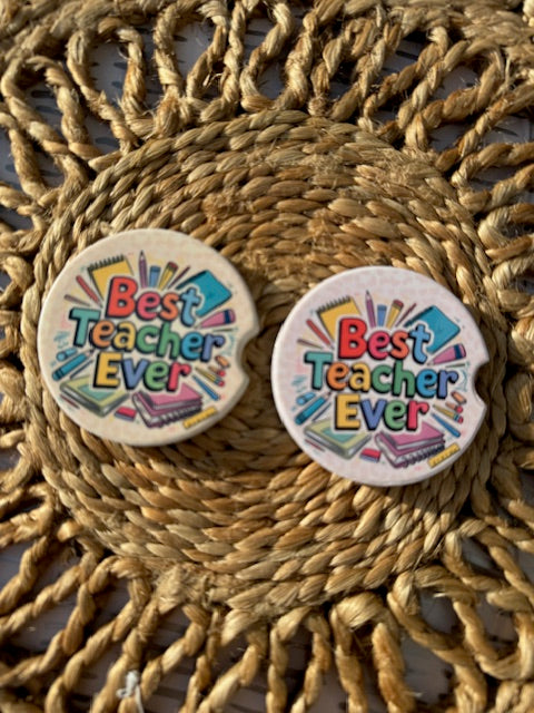 🍎 Best Teacher Ever Car Coasters – Show your appreciation with these fun, practical coasters! Perfect for keeping cup holders clean, they make a thoughtful gift for the amazing teacher in your life.