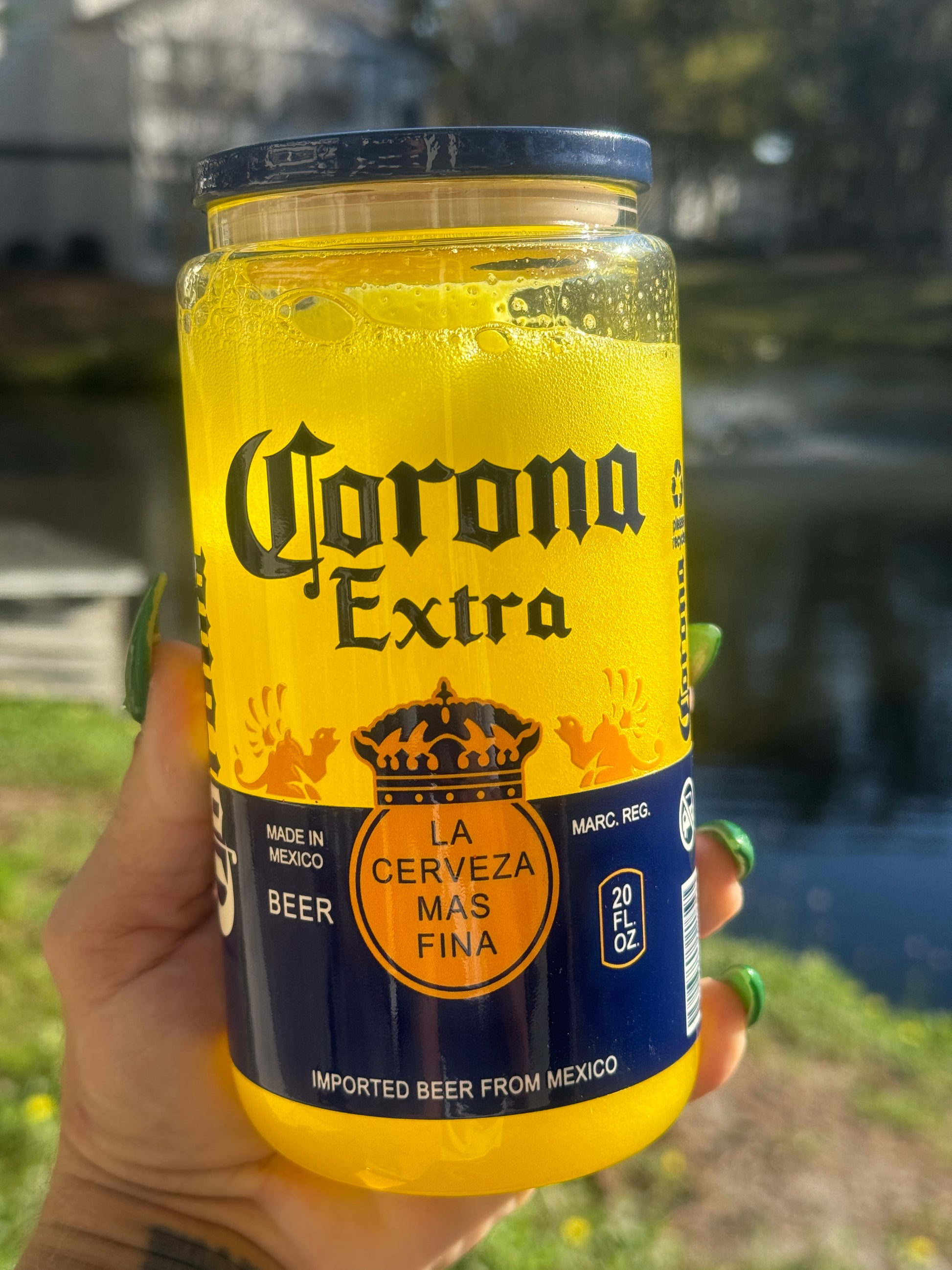 The perfect gift for the man in your life—especially if he loves Corona 🍺. This 10 oz glass tumbler features an authentic-looking Corona-inspired label and a realistic beer-filled appearance that looks refreshingly real.