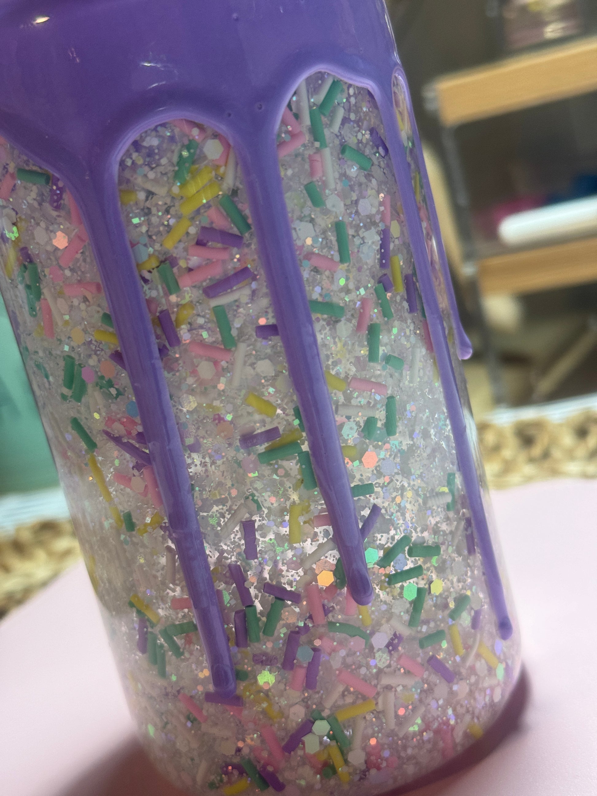 • Filled with pastel sprinkle glitter