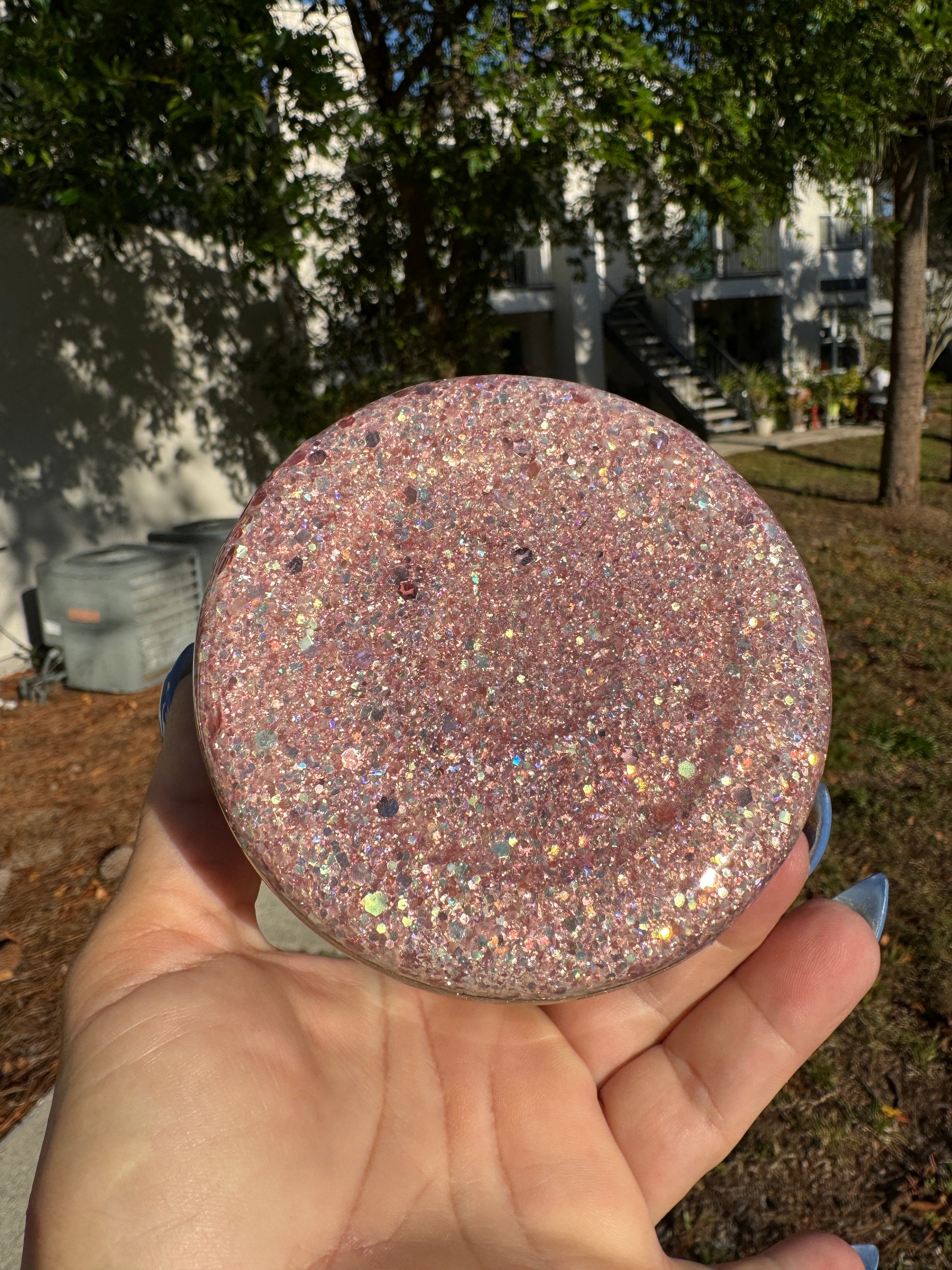 This eye-catching tumbler features cactus and floral vinyl accents, paired with the phrase “Not a Hugger” written in rose gold and gold vinyl for a stunning contrast. The design is finished with triple gold glitter vinyl striping and a beautiful rose gold glitter base, creating a warm, radiant shimmer that’s both elegant and full of personality.
