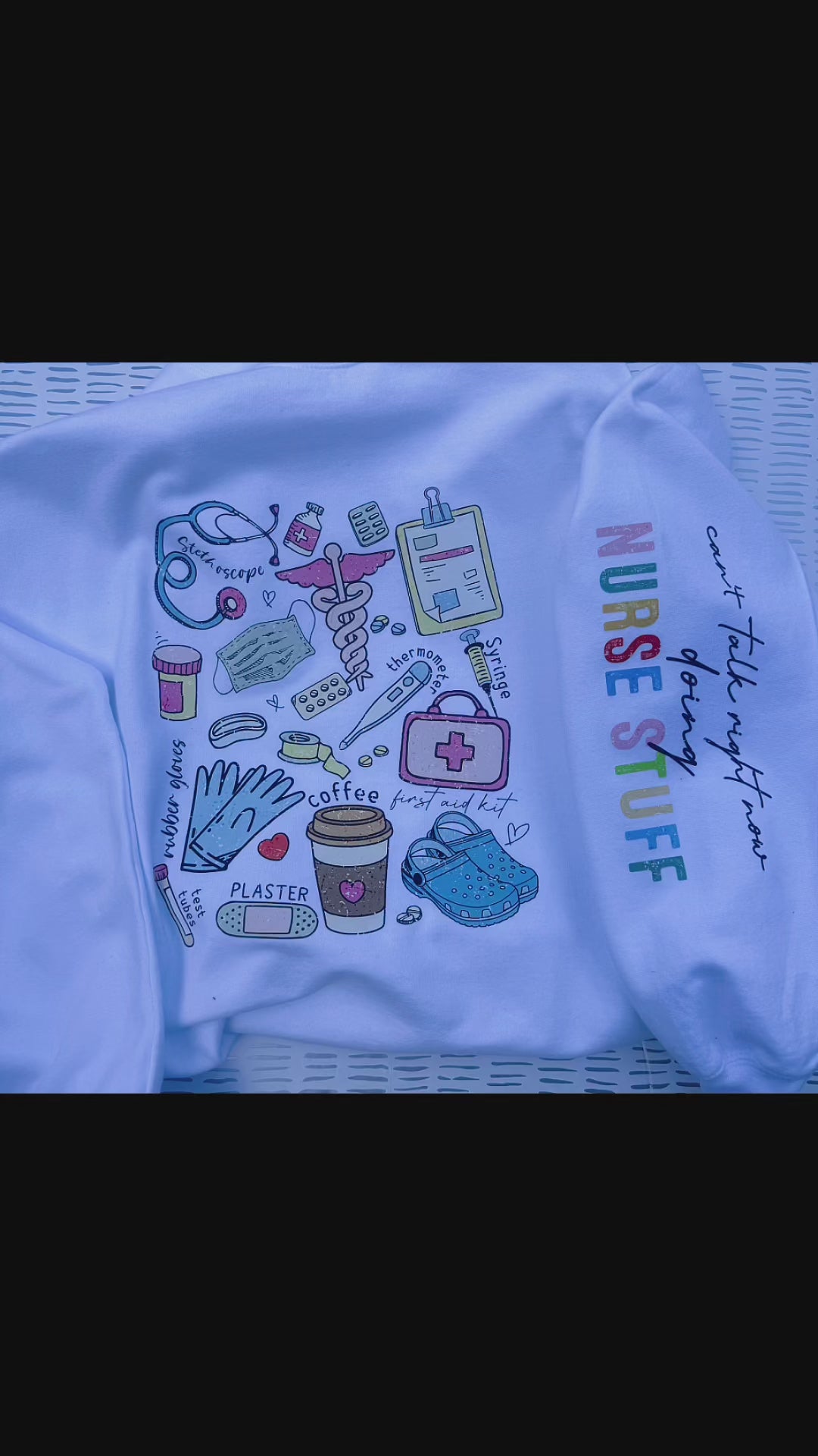 Pastel “Nurse Stuff” graphics across the front