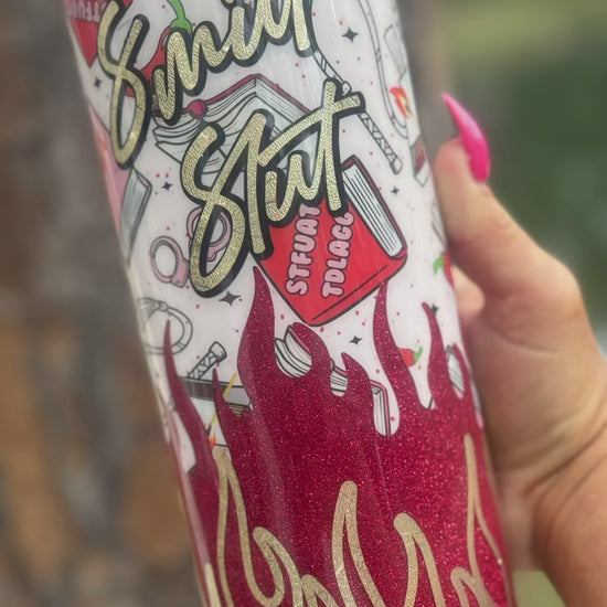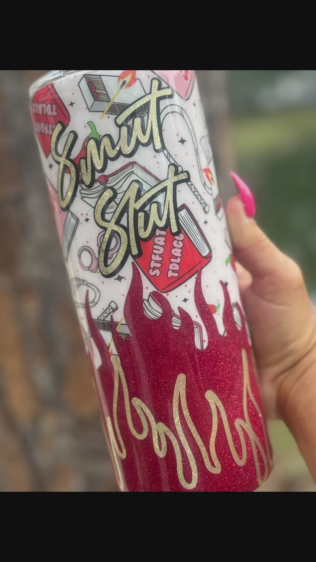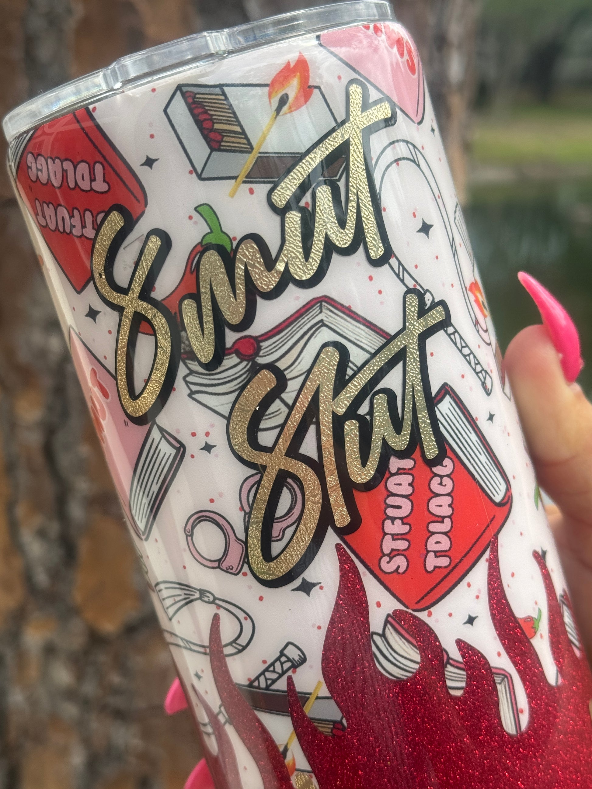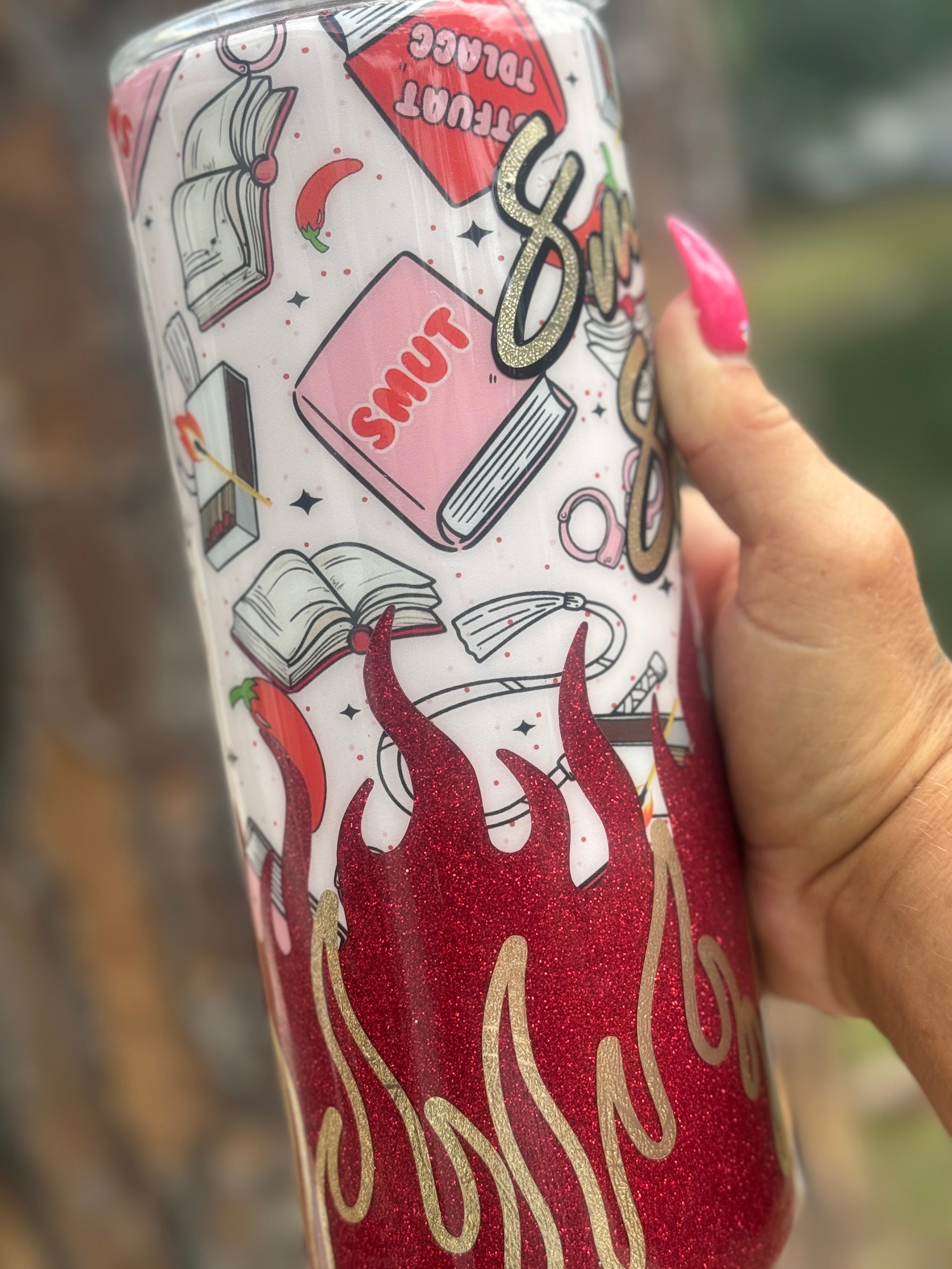 Turn up the heat with this playful book-lover tumbler 🔥. Designed for readers who enjoy a little spice in their stories, this 30 oz tumbler features striking gold flame details, a cheeky smut book–themed vinyl design, and gorgeous red glitter that sparkles as hot as your favorite romance novel.