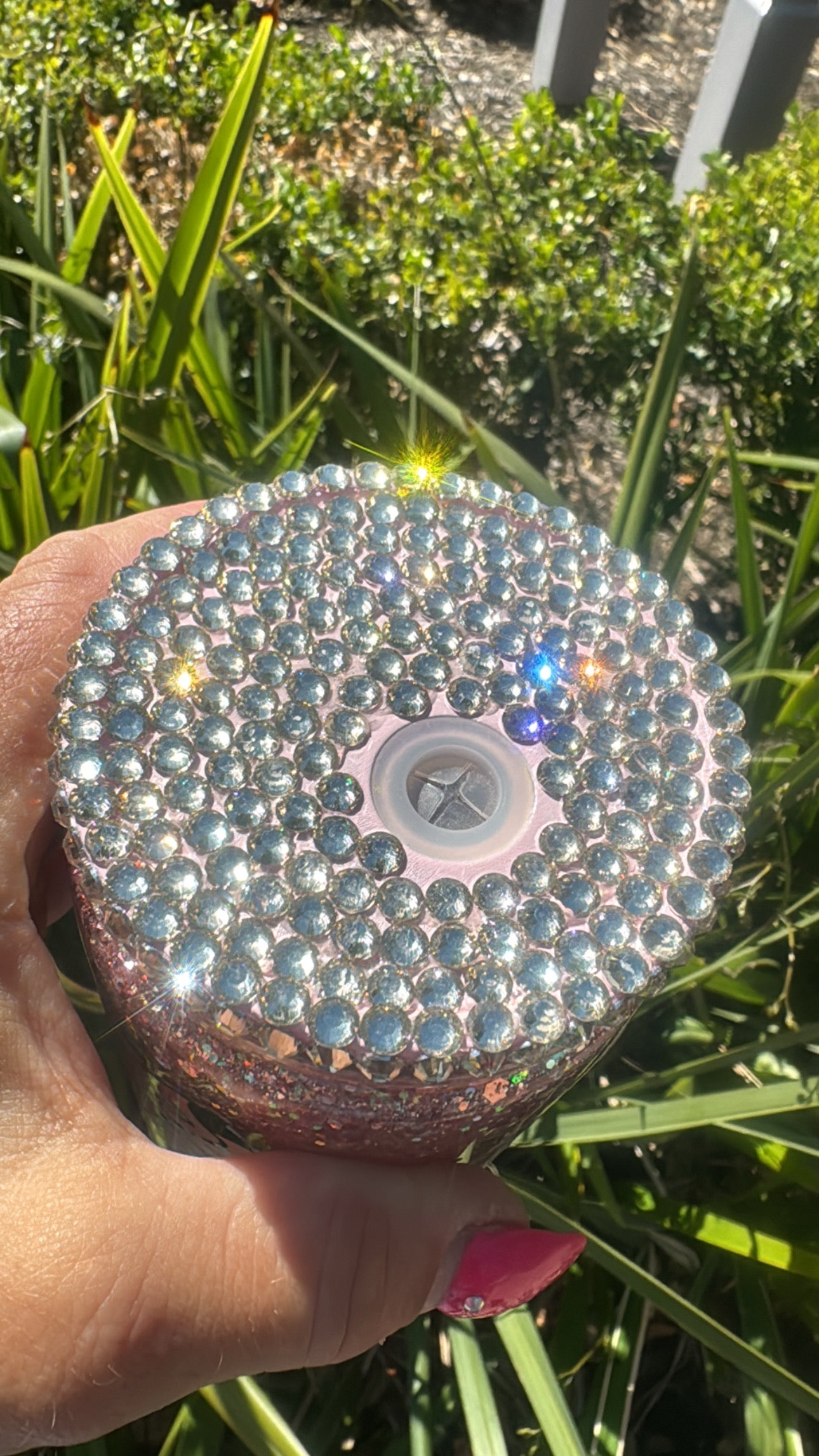 Filled with stunning pink glitter that swirls beautifully with every shake, it’s topped off with a rhinestone-covered lid that adds just the right amount of glam. Perfect for anyone who loves a touch of sparkle, fashion, and fun in their day.