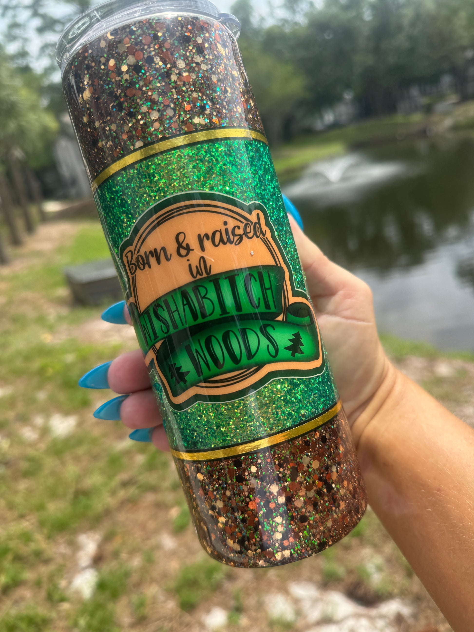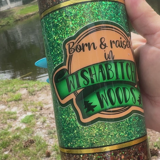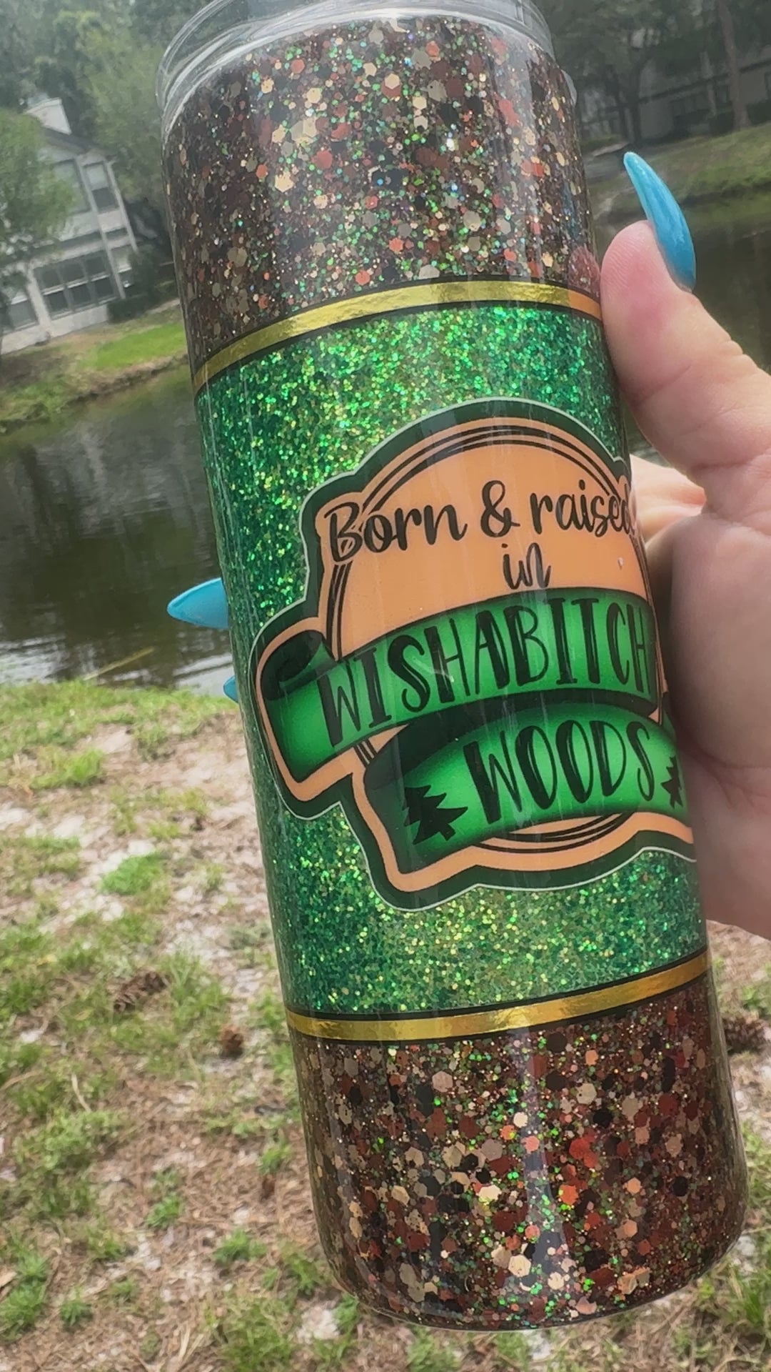 Bring bold humor and sparkle together with this hilarious “Wishabitchwoods” 29 oz tumbler ✨. Designed for those with a fearless sense of fun, this tumbler features a playful decal inspired by that unforgettable phrase. The gorgeous, complementing glitter finish and elegant gold detailing give it just the right mix of sass and sophistication.